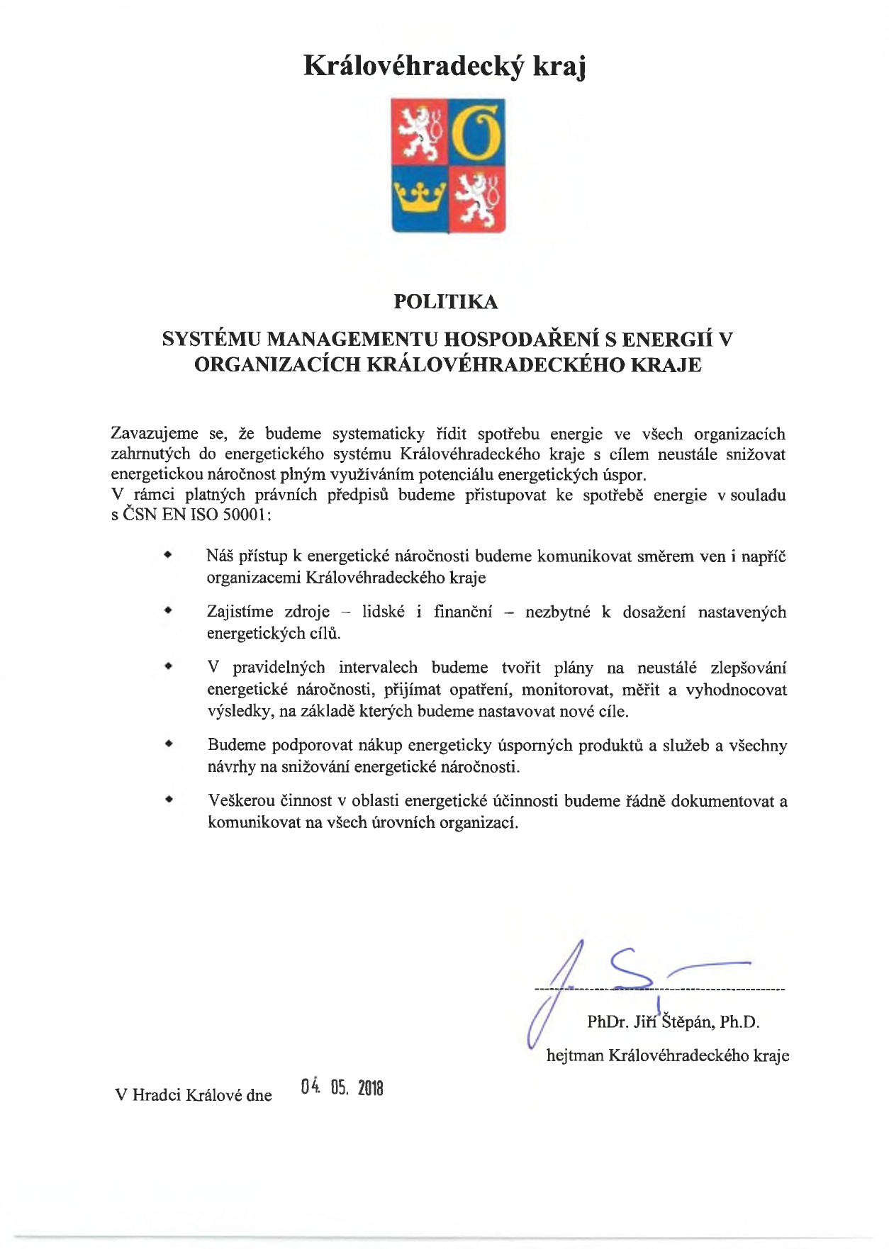 POLITIKA SYSTÉMU MANAGEMENTU HOSPODAŘENÍ S ENERGIÍ V ORGANIZACÍCH KRÁLOVÉHRADECKÉHO KRAJE